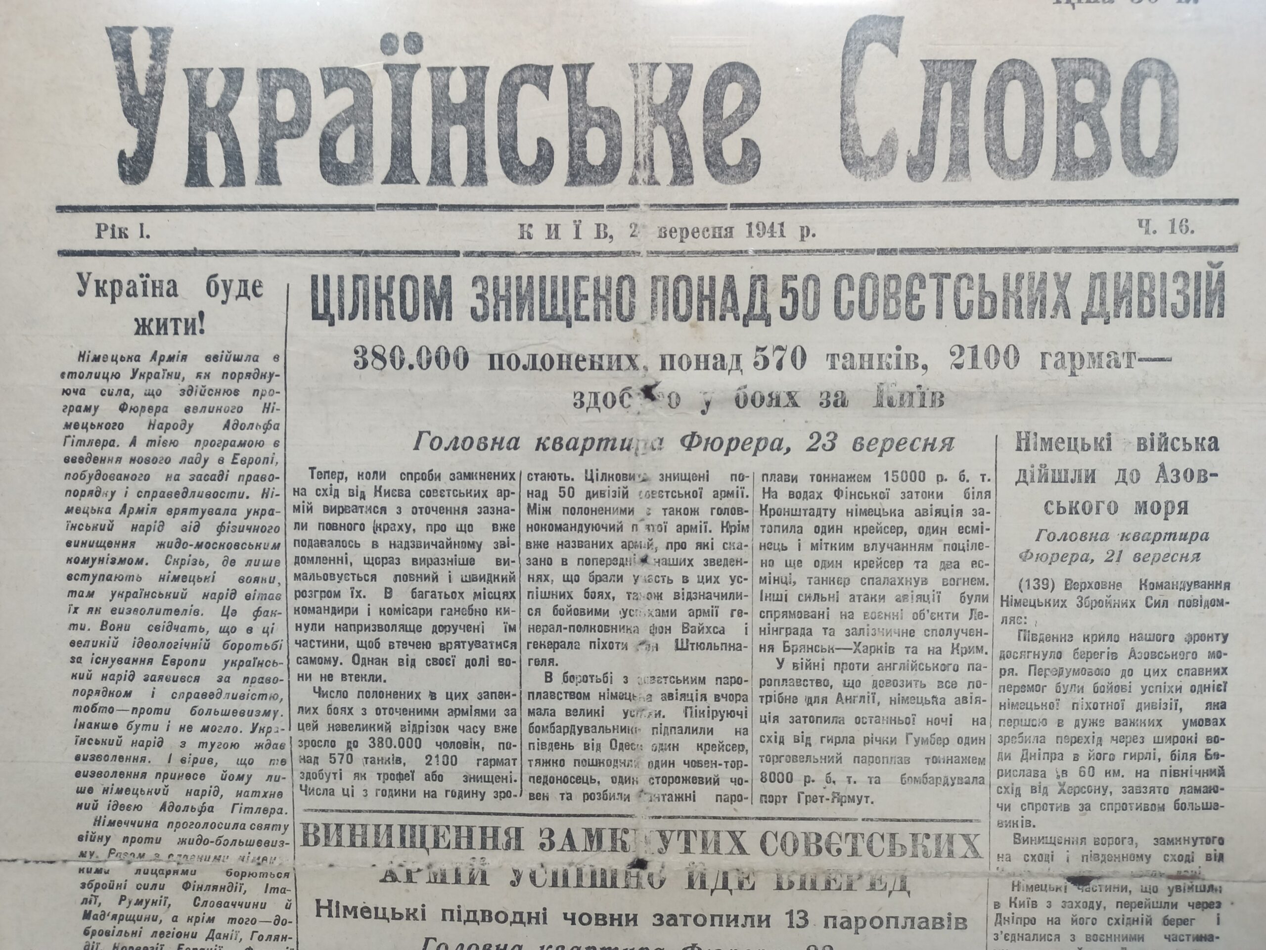 Київська німецька газета, 24 вересня 1941р.